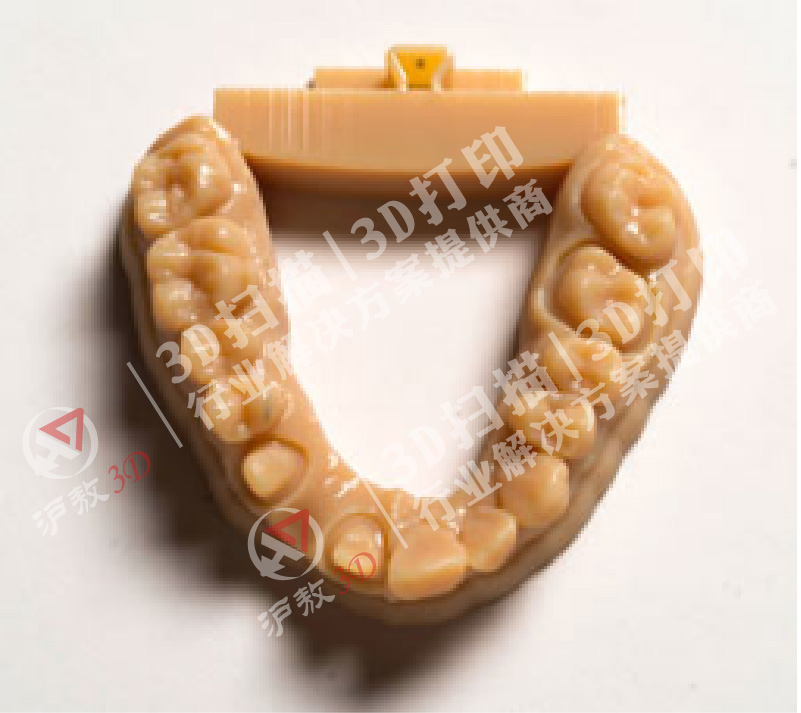 3D测量和数字化分析法具有较高的精确性,可对人牙咬痕作出精确的分析认定。建议在以后的咬痕鉴定中采用此方法做为嫌疑人个体识别认定的科学依据。(下图为3D打印牙模)