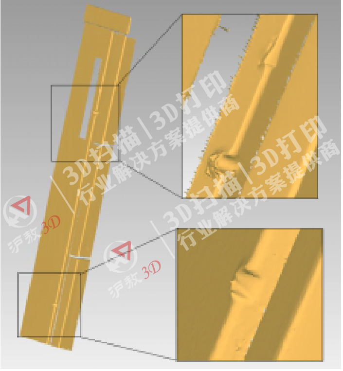 三维扫描技术、三维实体模型重构技术在痕迹物证鉴定领域的应用将突破传统二维痕迹形态学比对方法,实现痕迹物证检验的全程非接触式和非创伤性的三维痕迹数字化信息采集、比对和判定,构建了全新的痕迹比对模式,能够有效提升痕迹物证提取和检验鉴定能力。(下图为现场撬痕扫描提取数据)