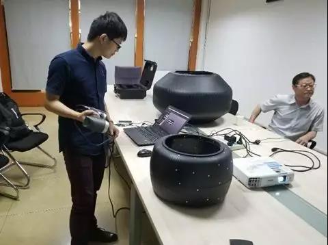 我们的工程师通过手持式三维扫描仪,直接三维扫描采集轮胎硫化胶囊内外壁数据,测量快速准确。