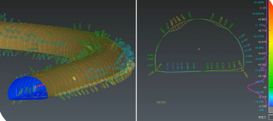 三维激光扫描采用激光测距的方式,通过记录被测量物体表面海量密集的三维坐标值、反射率及纹理信息等,借助于计算机系统和激光点云算法,能够快速获得被测物体的三维模型及其线、面、体等各种数据,从而实现了隧道检测从点测量到面测量的跨越。