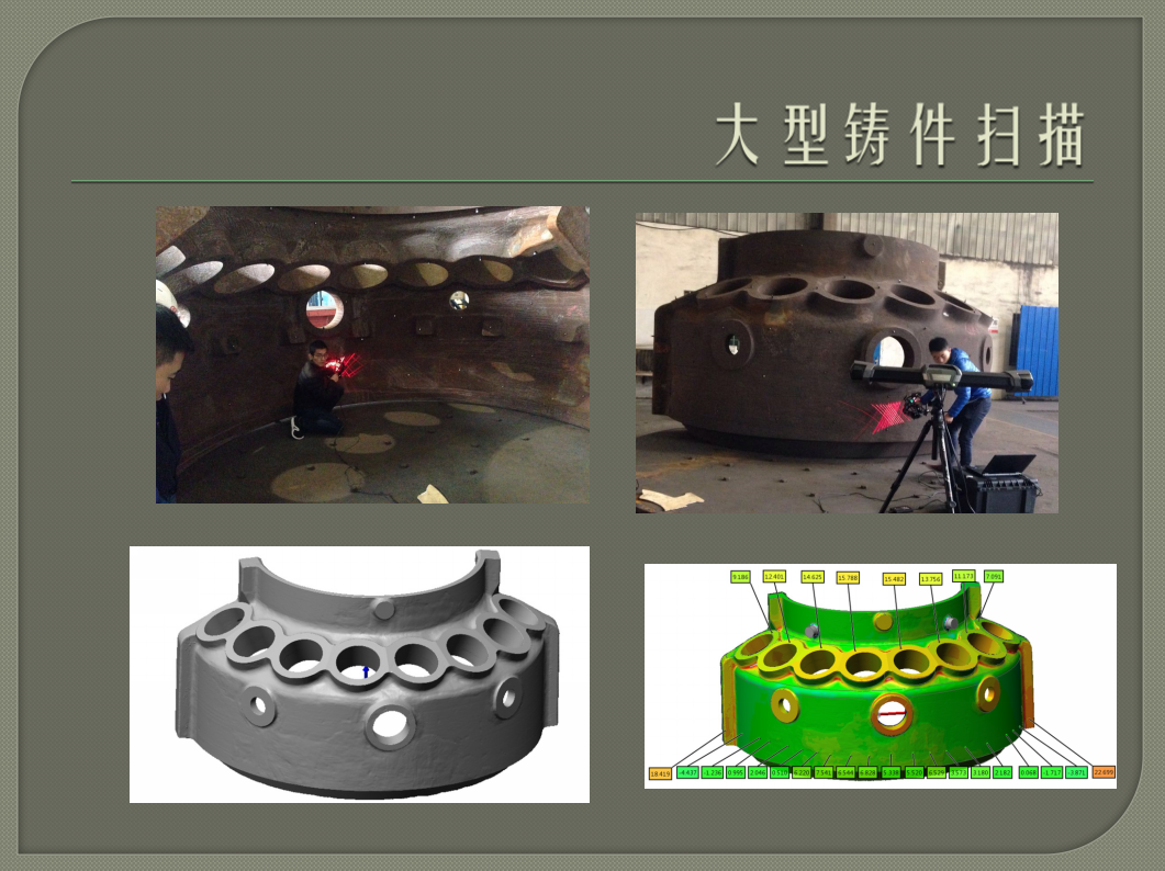 比如我们一位铸造客户的问题,他们生产的都是大型铸件。由于扫描仪量程限制、现场环境差、工件翻面数据拼接困难等因素导致这种大型工件的检测任务困难重重。而三维扫描的优势就出来了