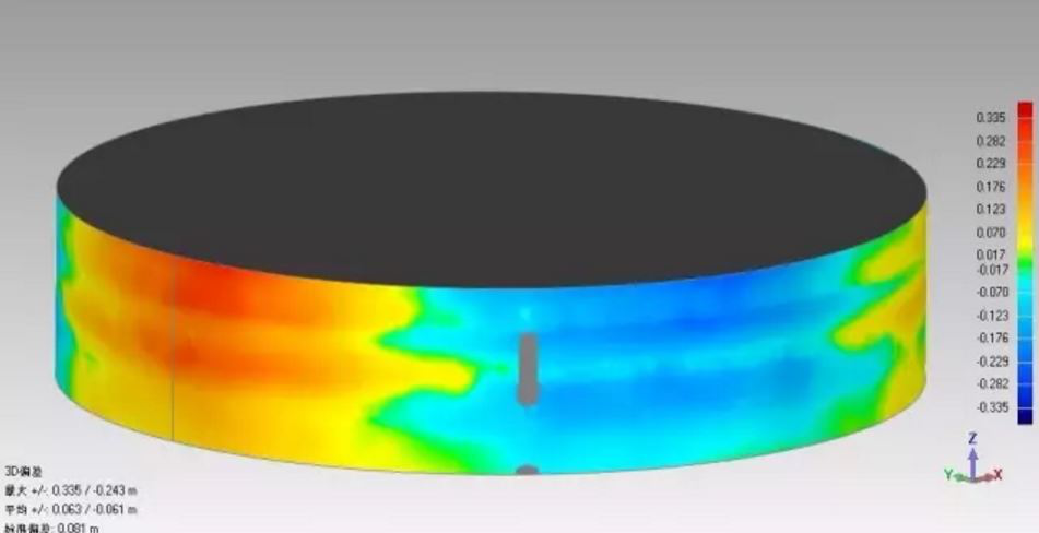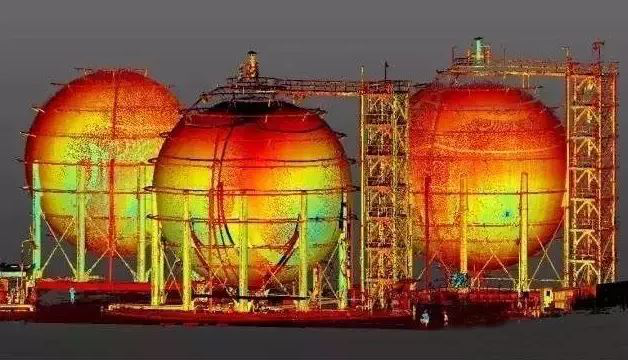 容积计量中最典型的三维扫描案例就是油罐的容积计量,油罐分为立式、卧式和球形,由于罐中有液体压力的作用和它的圈板垂直切面并不是规则的矩形,而是类似于略微鼓胀变形的矩形,而且油罐内的附件种类和数量较多,用传统的测量方法测量起来不仅费时容积值也会有所偏差,而三维激光扫描仪却可以对物体进行三维重建,能够测量内置各种形状附件的罐体,有效的解决了目前国内油罐容积标定存在的难题。