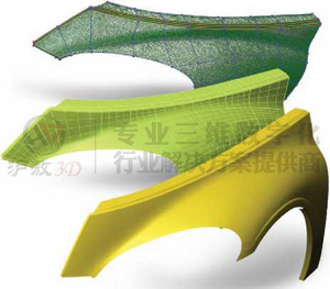 | 曲面建模-创建CAD友好的自由曲面 专业的CAD/CAM的解决方案通常不提供三角化模型的3D建模工具。将扫描对象曲面转化到CAD/CAM软件的一个常见方法是,在扫描点云建立的三角化模型上拟合NURBS曲面网格。NURBS曲面是自由曲面的理想数学描述,并且它们是CAD/CAM友好的。 PolyWorks|Modeler 提出一种直观的曲面生成方法,首先在三角化模型上放置曲线,然后自动相交,生成四边或N边NURBS面片,使用NURBS面片控制NURBS曲面连续网格的拟合。拟合好的曲面可以输出到你喜欢的C A D / C A M 程序中去做进一步的外观曲面处理。 PolyWorks|ModelerNURBS曲面技术提供了一个显著的工时和曲面质量之间的平衡,由于: • 直观的曲线修正方法和连续曲率的曲线 • 逆向工程市场上的最佳NURBS曲面拟合引擎,体现在质 量方面(精确度,光顺度和连续性) 和灵活性方面(裁剪曲面和T型结,基于曲率的两步匹配流程,从混合匹配曲面到现有CAD模型,实现本地化CAD重构的可能性) • 控制NURBS面片边界的G2, G1, 或 G0连续 • 自动将G2曲面拟合到有矩形拓扑结构的NURBS面片区域 |
